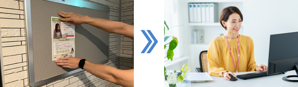 非効率なアナログ管理は終わり!お手元のPCですぐに情報が更新できるため、掲示物の印刷費用、移動時間や交通費が削減できます。