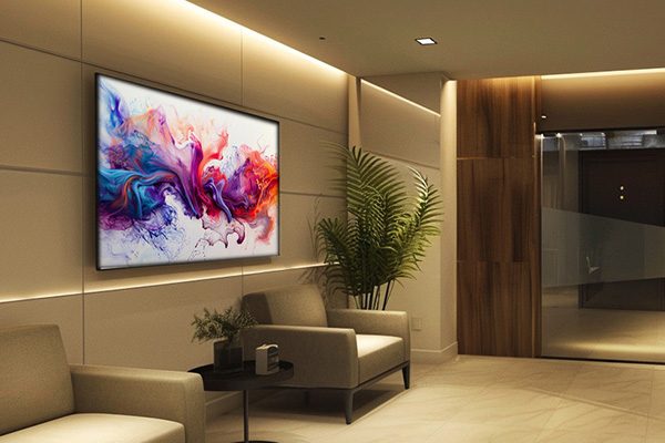 ただ情報を告知するだけのツールではありません。デジタルアートを取り入れれば、ハイセンスな賃貸物件のエントランスとして新たな付加価値も。